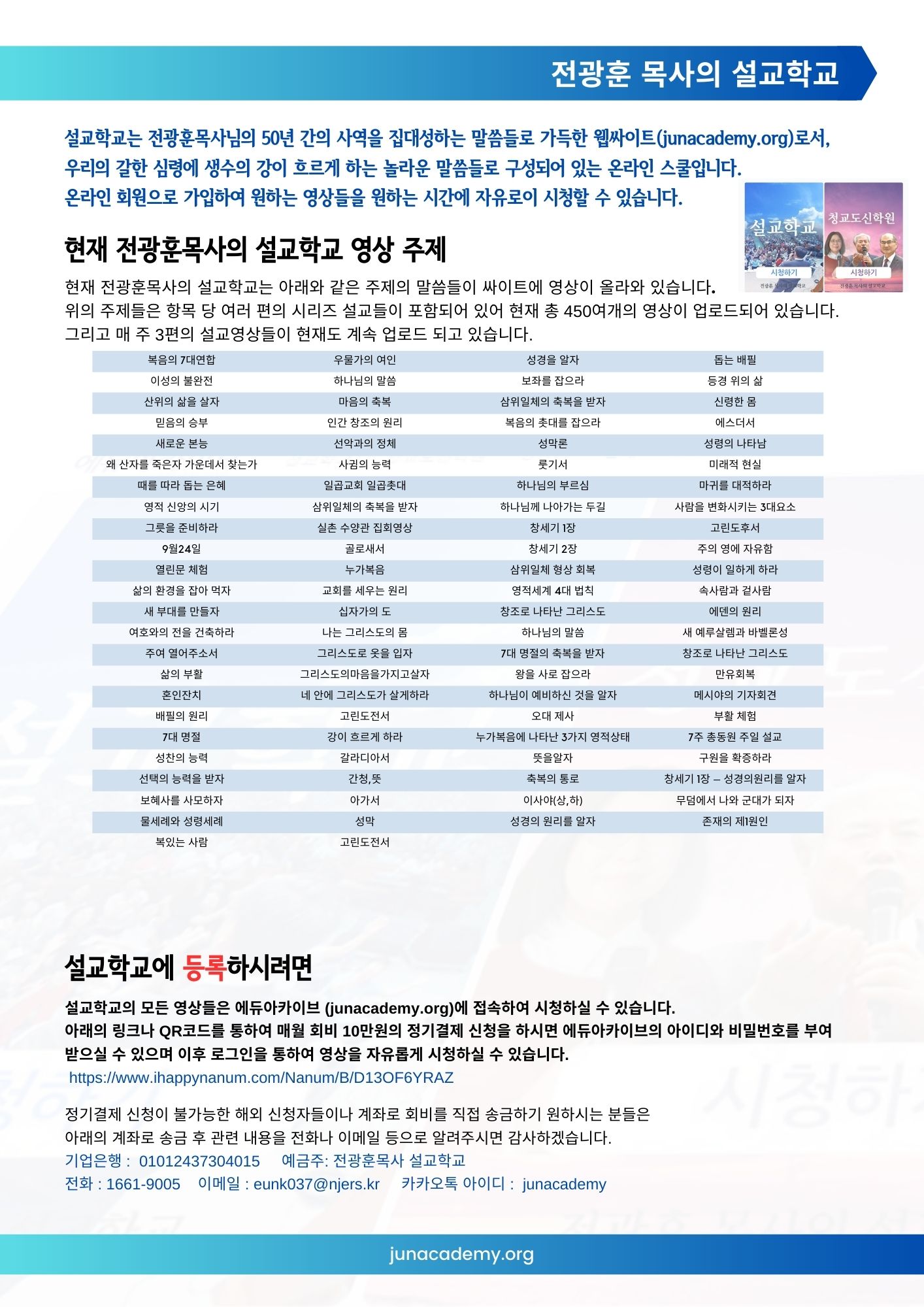 [영상] 청교도신학원 5기 전광훈목사님의 말씀학교 영상 리스트
